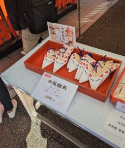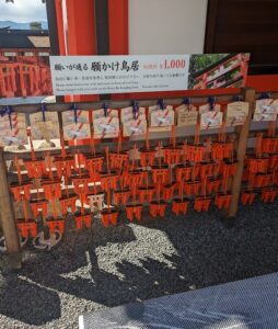 伏見稲荷大社は、千本鳥居が代表的な名物ですので、鳥居のものと、狐のものがあります。