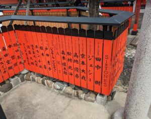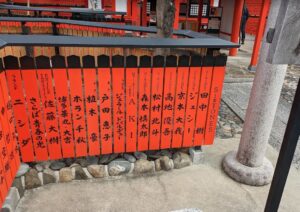 車折神社には、多くの玉垣があるのですが、神社に足を運んだ方が、玉垣に名前を書く事が出来ます。